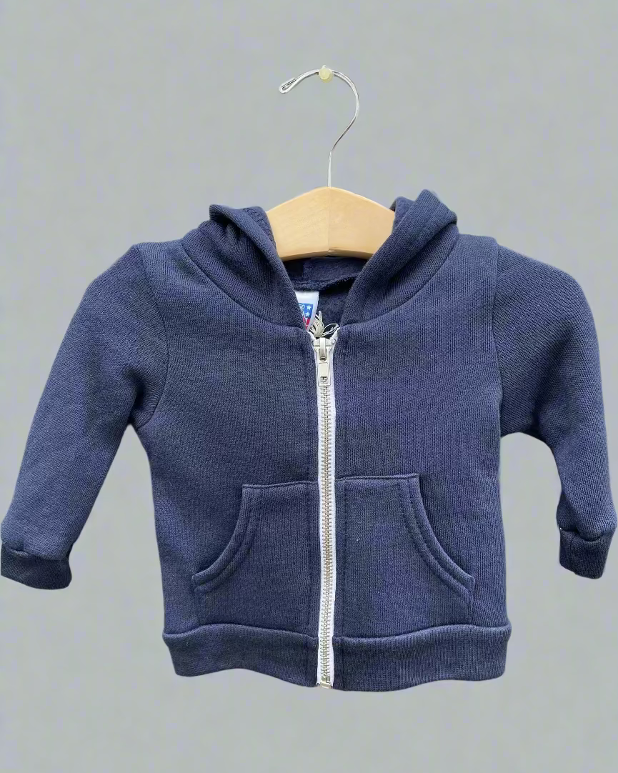 Everybody’s favorite print now available on a baby zip hoodie. Our famous "Cape Moon" design printed on an ultra soft and cozy Royal Apparel pocket zip. Perfect layering for just hanging out. This style is currently available on a navy zip hoodie and printed in white ink.