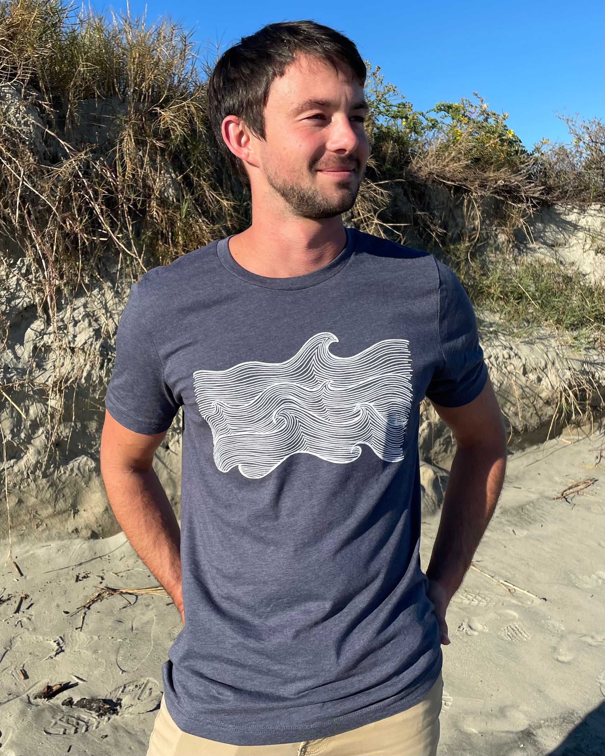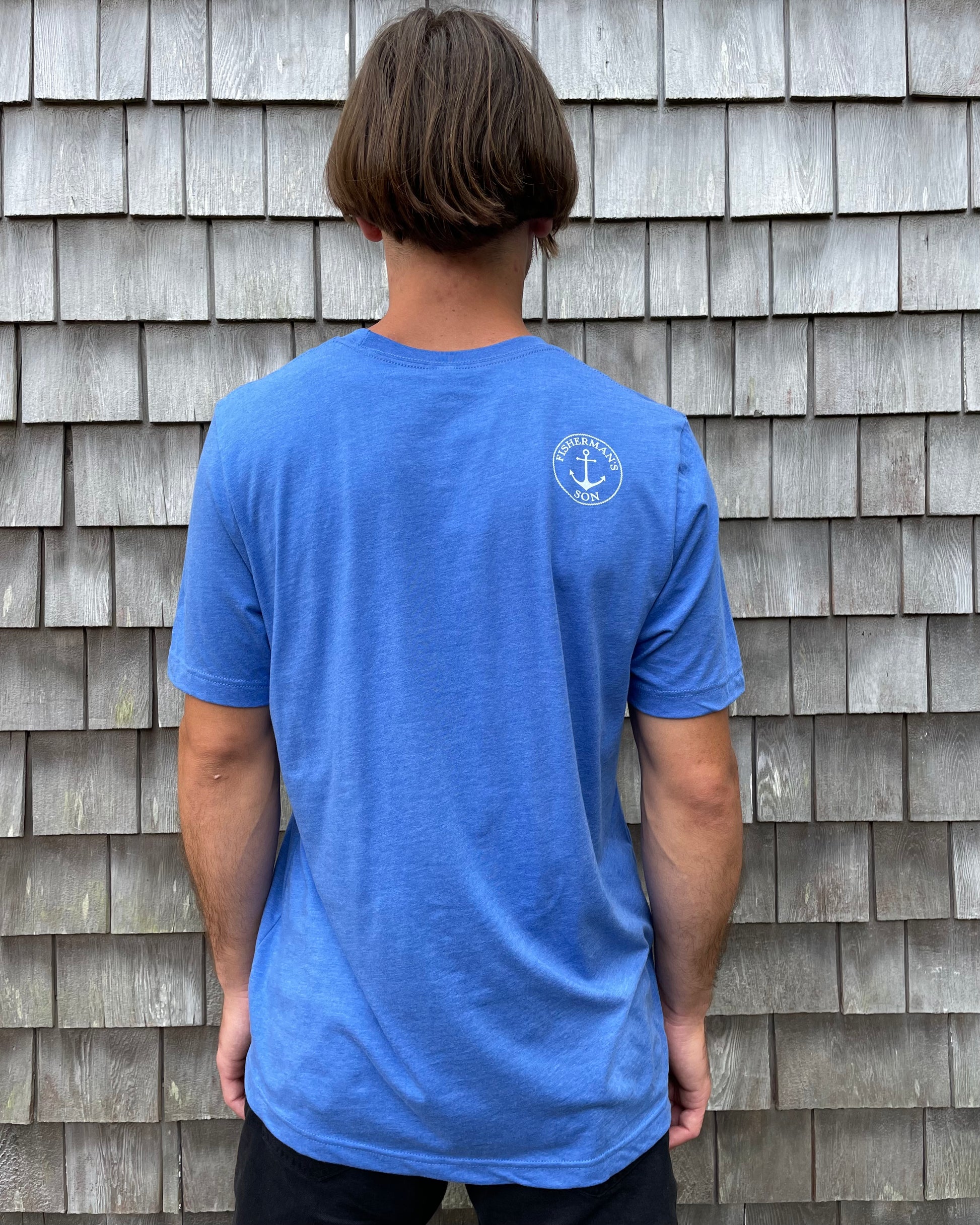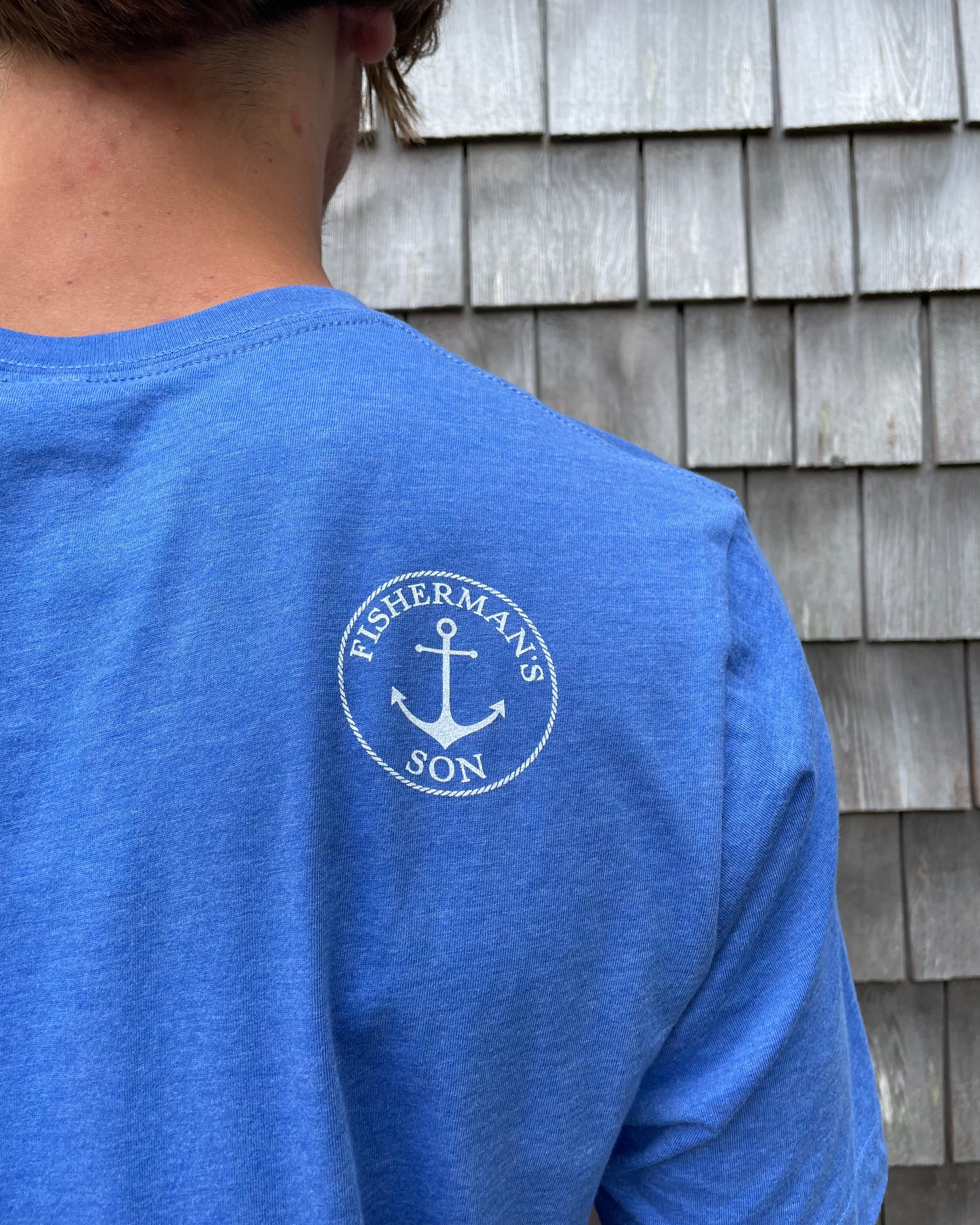 Everyone's favorite graphic tee, our "Life Comes in Waves" design, center chest print with back right shoulder "Fisherman's Son Anchor logo". Printed on a soft Bella Canvas cotton blend t-shirt. This shirt fits true to size.