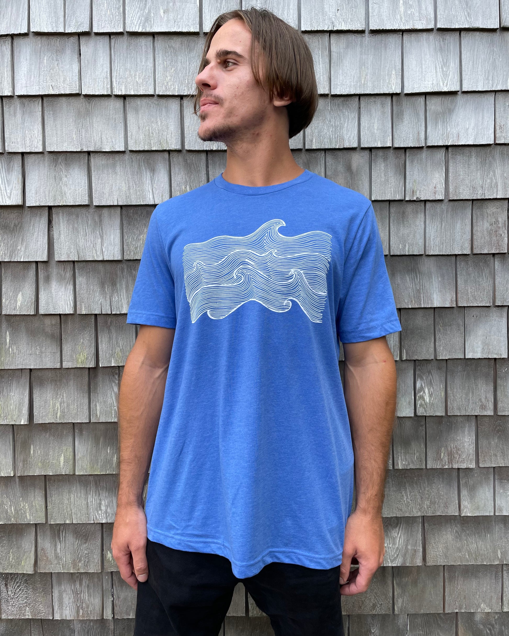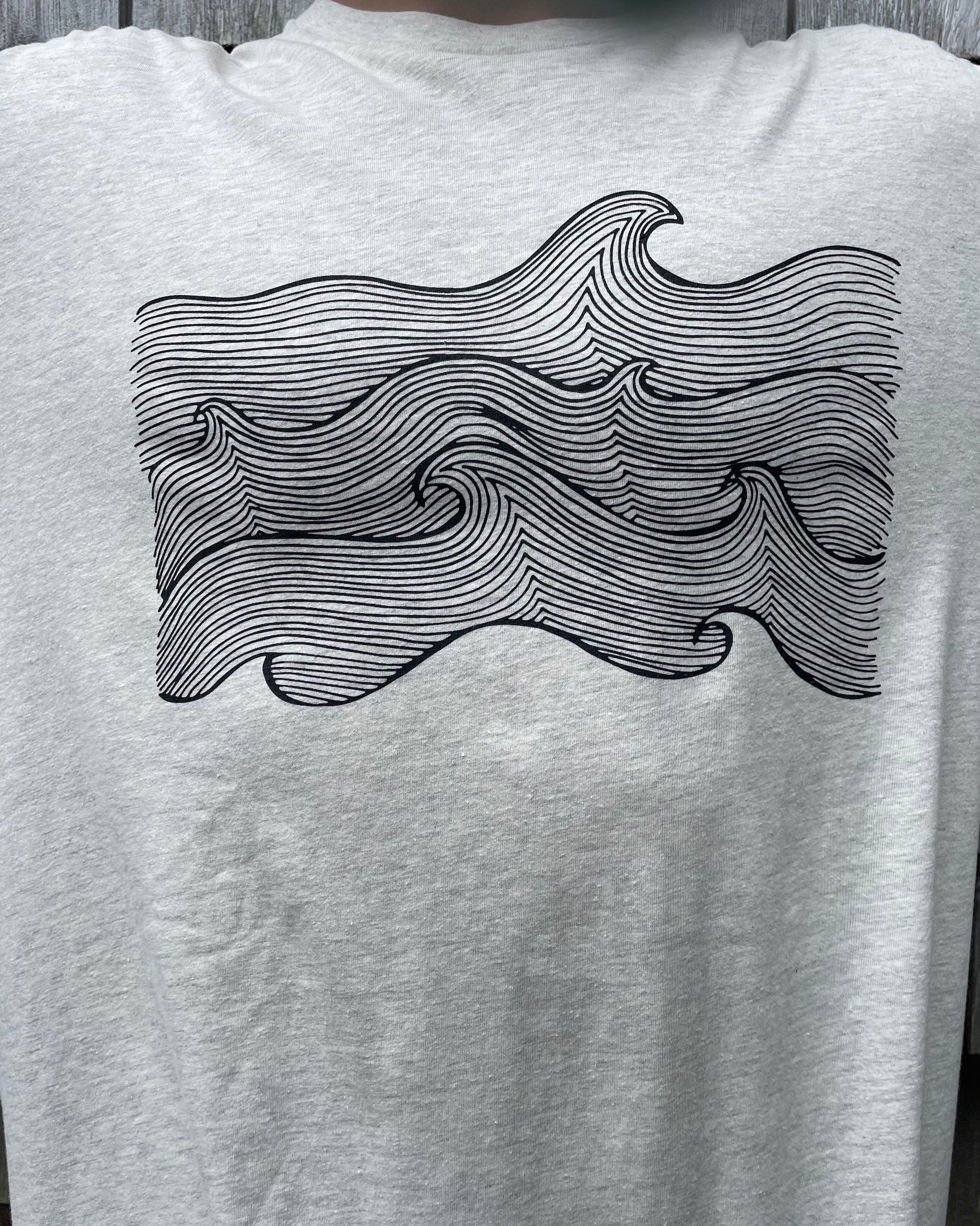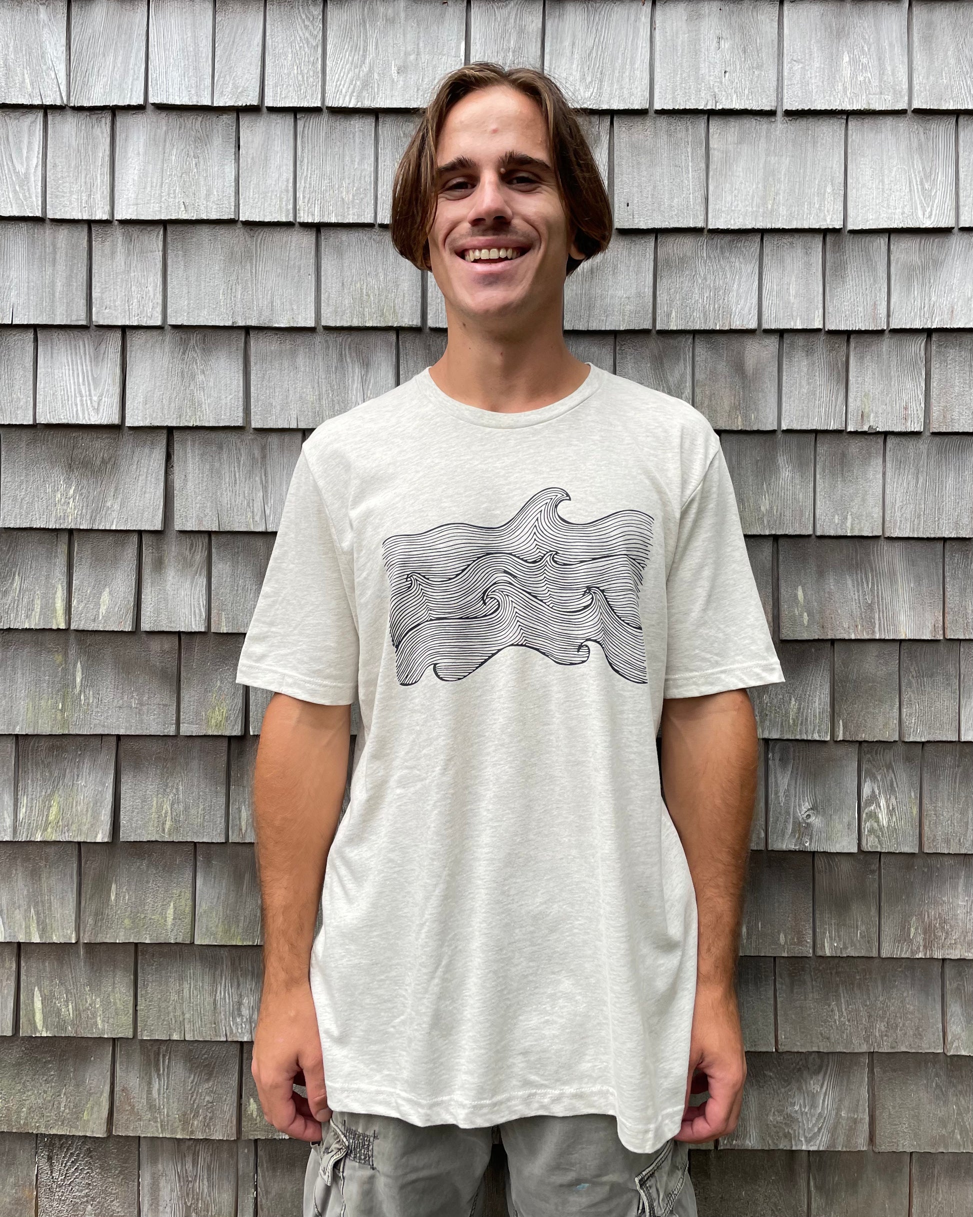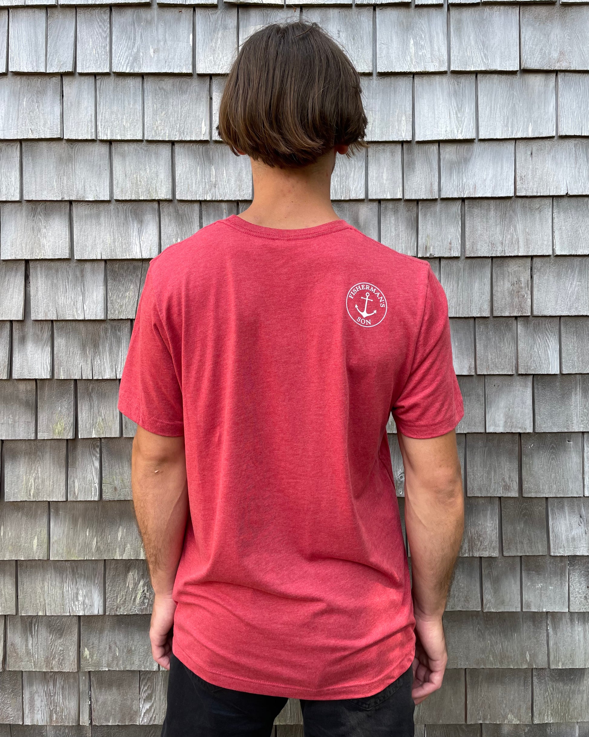Everyone's favorite graphic tee, our "Life Comes in Waves" design, center chest print with back right shoulder "Fisherman's Son Anchor logo". Printed on a soft Bella Canvas cotton blend t-shirt. This shirt fits true to size.