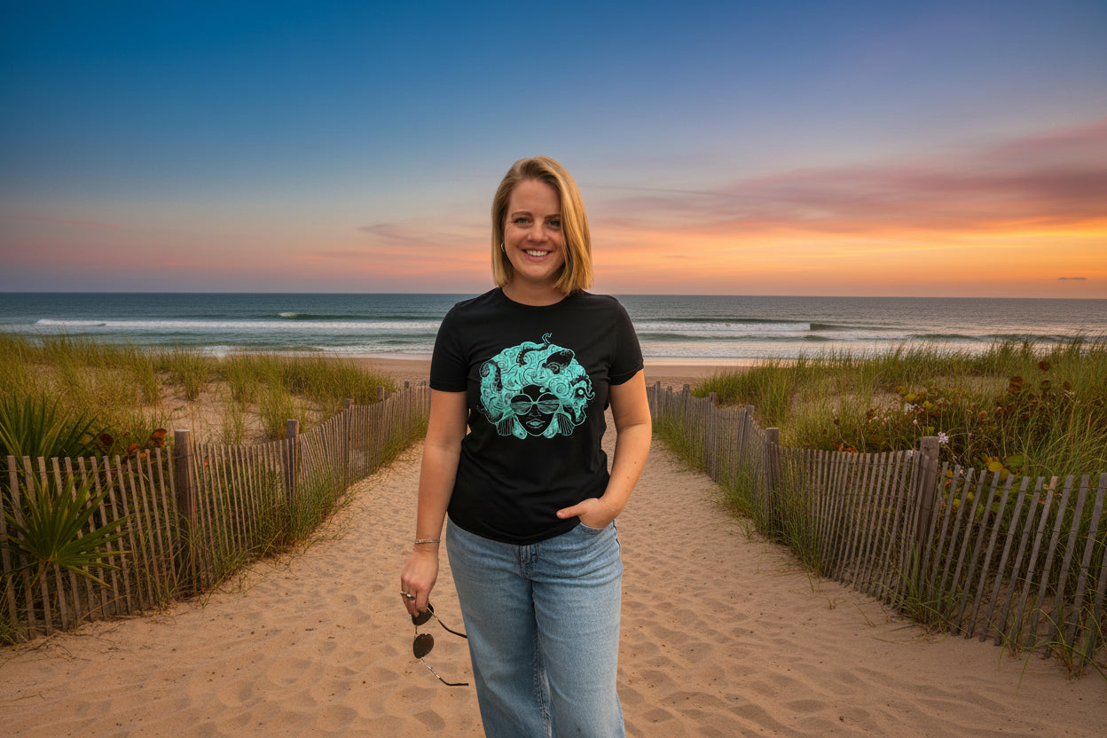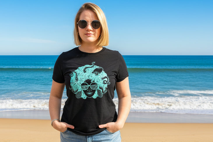Our classic crew tee available in black & grey with our Seadusa image printed with eco friendly inks. Fits true to size.