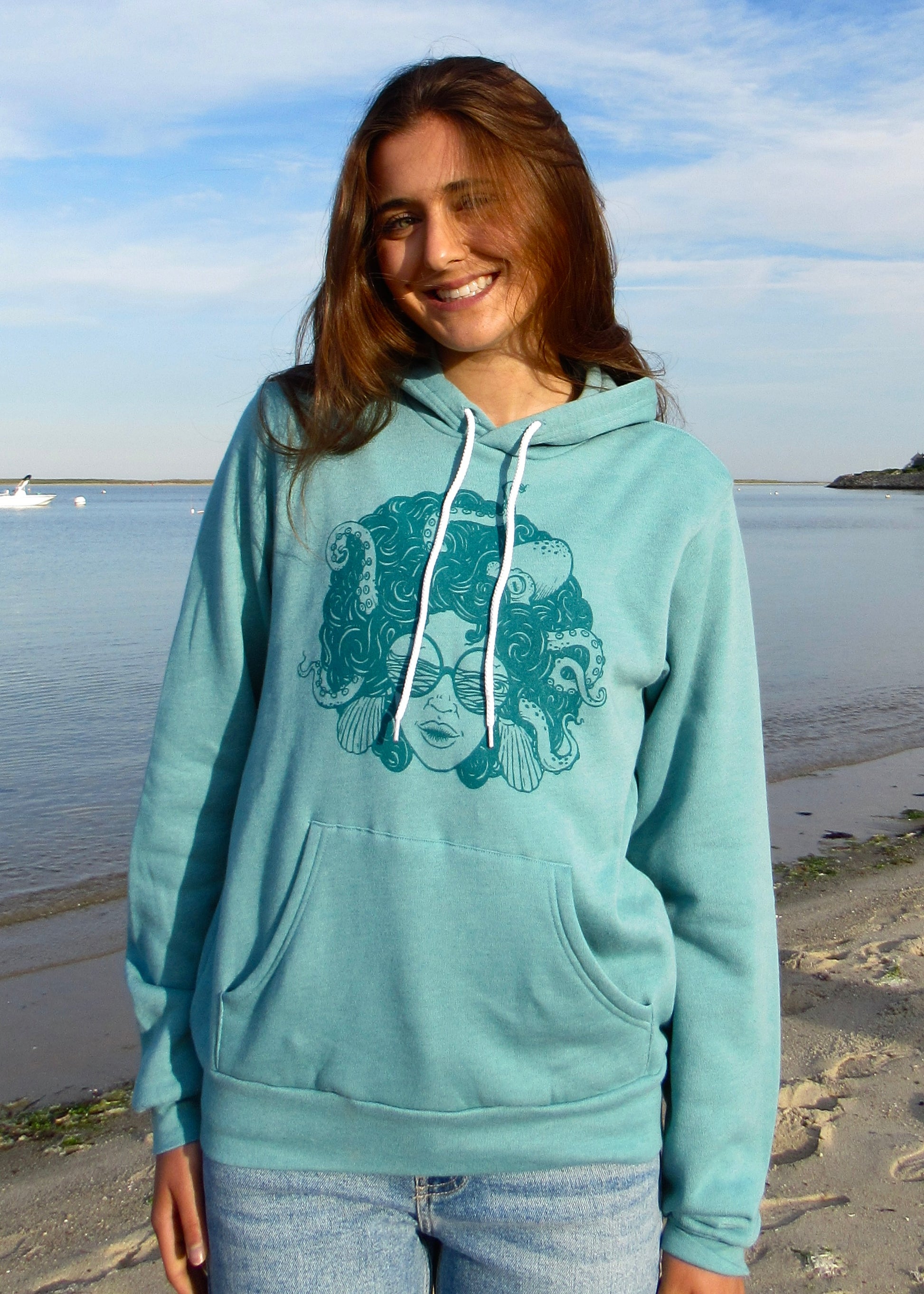 We printed our "Seadusa" design on a blue lagoon Bella Canvas Unisex sweatshirt. This mid weight sweatshirt has a super plush inside and is perfect for any time of the year. This sweatshirt is unisex so it runs slightly roomy so if you prefer a snugger fit size down one size.